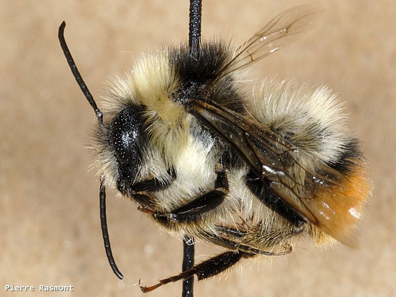 Bombus (Mendacibombus) handlirschianus Vogt, 1909 Coat colours make it generally easy to distinguish females of handlirschianus from those of shaposhnikovi. At the present time, one can not separate the males from handlirschianus from those of shaposhnikovi. They have an identical creamy striping pattern and the same genitalia.
