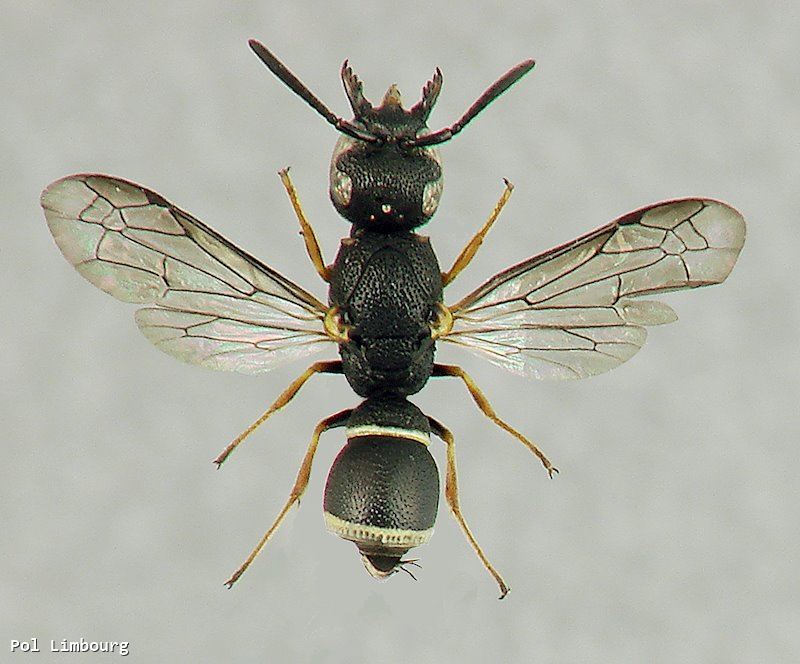♀ Il s'en distingue par la carène transversale du tergite 1 s'éffaçant sur les côtés; les fosettes du vertex très développées.