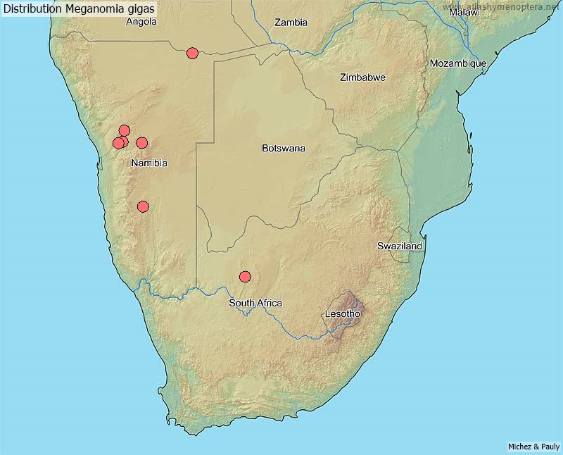 Meganomia is restricted to the Sub-Saharan Africa except one undescribed Meganomia species recorded in Yemen.