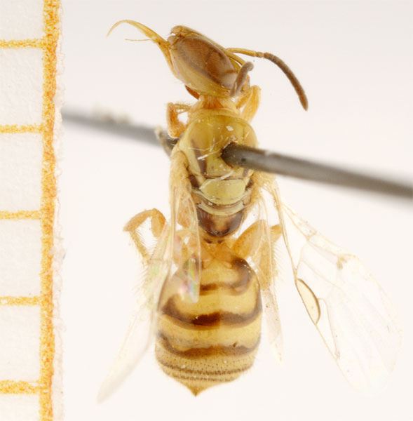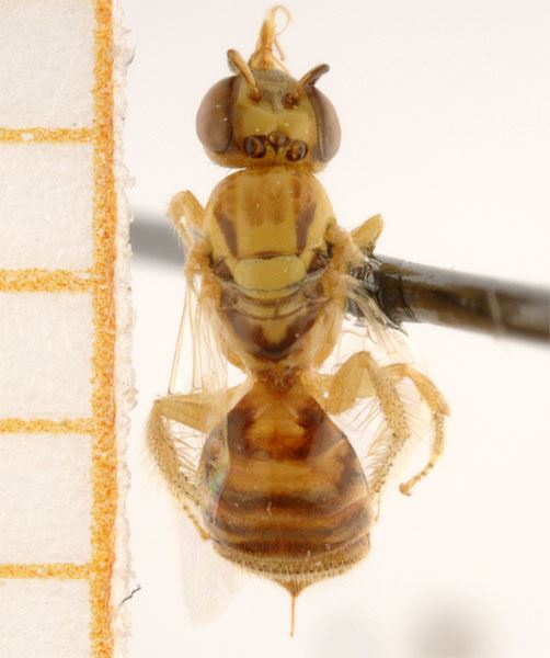 Diagnose. Diffère des autres espèces par la tête et le metasoma en majorité jaunes, l'espace ocellocculaire égal au diamètre d'un ocelle et l'absence de deuxième veine récurrente aux ailes antérieures.