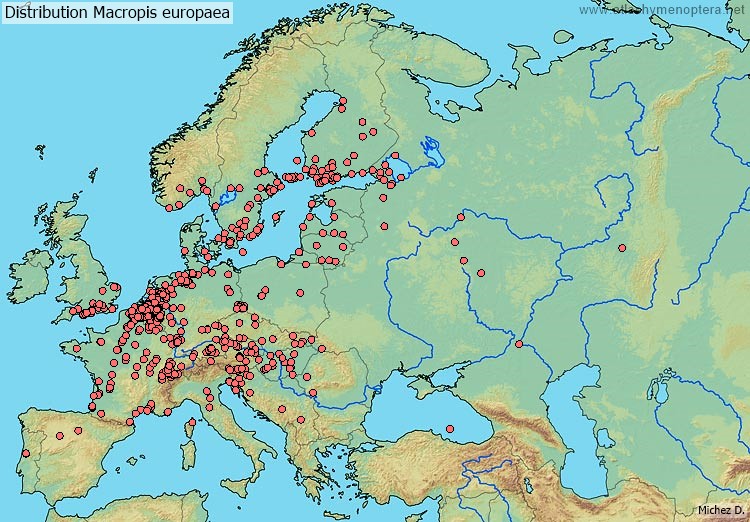 The genus Macropis is Holarctic. In East-Palaearctic, Paramacropis is distributed Northern the Yellow Sea and Sinomacropis Southern. The subgenus Macropis s.str. is also Holarctic. Three well-distinct species groups can be considered: (i) a West-Palaearctic group (three species) reaching Altai (Russia), Northern Kazakhstan; (ii) an Asian group which includes nine Chinese, East-Siberian and Japanese species; (iii) a Nearctic group with four species mainly distributed along the Eastern coast of the USA and Canada.
