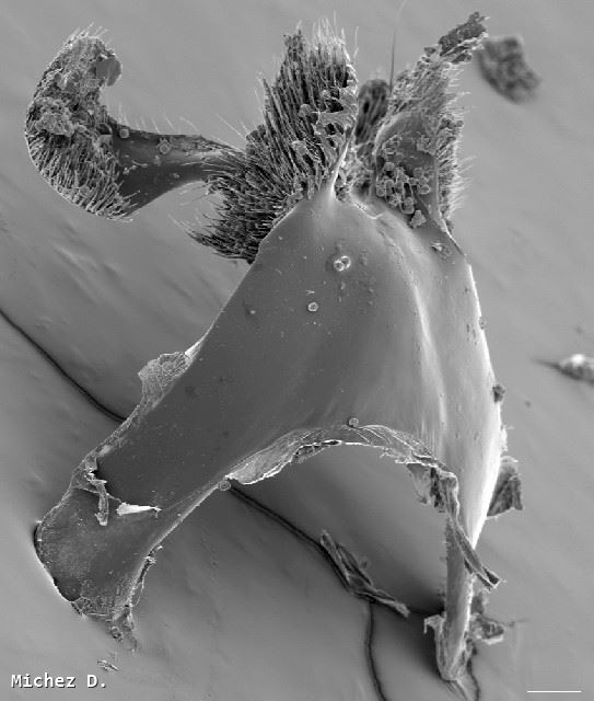To date, Promelitta alboclypeata is the only known species for the genus Promelitta and the tribe Promelittini. Promelitta presents a few apomorphies: metasomal terga with basal hair bands, shape of propodeum, female hind basitarsus with expanded apical blade, shape of hidden male sterna (S6-8) and male genitalia (Michener 1981). Promelitta shares also many morphological features with other genera of Melittidae s.l.. For instance, the female keirotrichia and its setae are like those of Eremaphanta (Dasypodaini) and Capicola (Dasypodaini) (Michener 1981, Engel 2005, Michez & Patiny 2006). The female pygidial plate has a median elevated area like in Capicola (Dasypodaini) and Sambini. The clypeus of male is coloured as in some Eremaphanta (Dasypodaini) and Macropis (Macropidini). The outer margin of stipes and the apicolateral structure of male S7 are similar to Dasypoda (Dasypodaini) and Sambini. The gonostylus is articulated as in Sambini and Macropidini (Michener 1981). Like Afrodasypoda, the phylogenetical affinities of Promelitta are still unclear.