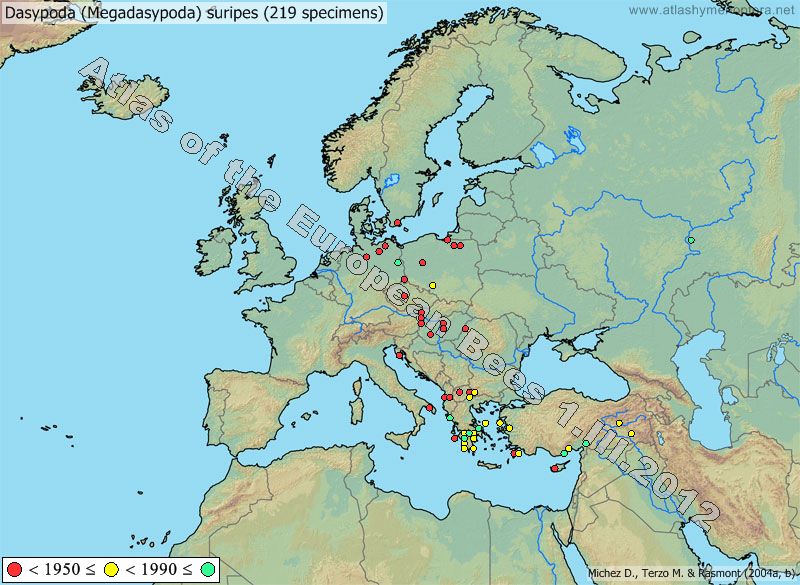 Dasypoda frieseana shows a restricted distribution in Greece, Albania and Macedonia where the subpopulations seem to be isolated from each other.