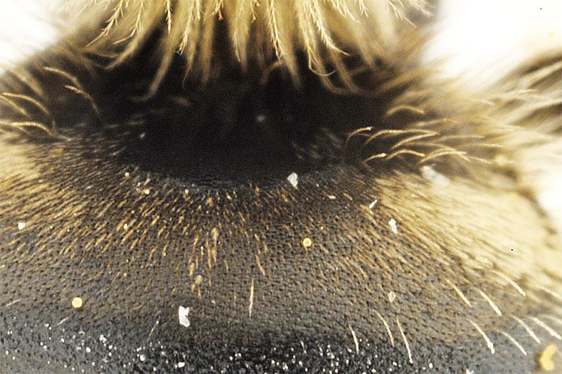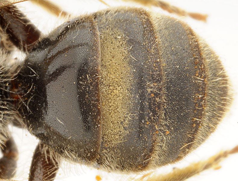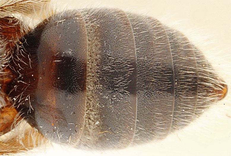 Diagnose. Espèce de grande taille (longueur 9 mm), à ponctuation du scutum dense. La femelle diffère de L. matoporum par la tête plus courte et les angles du propodeum moins arrondis, de leucophenax et perihirtum par l'absence de bande apicale bien fournie sur la marge apicale des T3 T4, de L. ocrascutellum par le scutellum non caché par un tomentum dense, de L. mirifrons par la taille plus grande et la pilosité plus fauve, au moins sur le vertex et le mesosoma. Le T1 est très finement ponctué strié et présente une texture particulière à ce groupe.