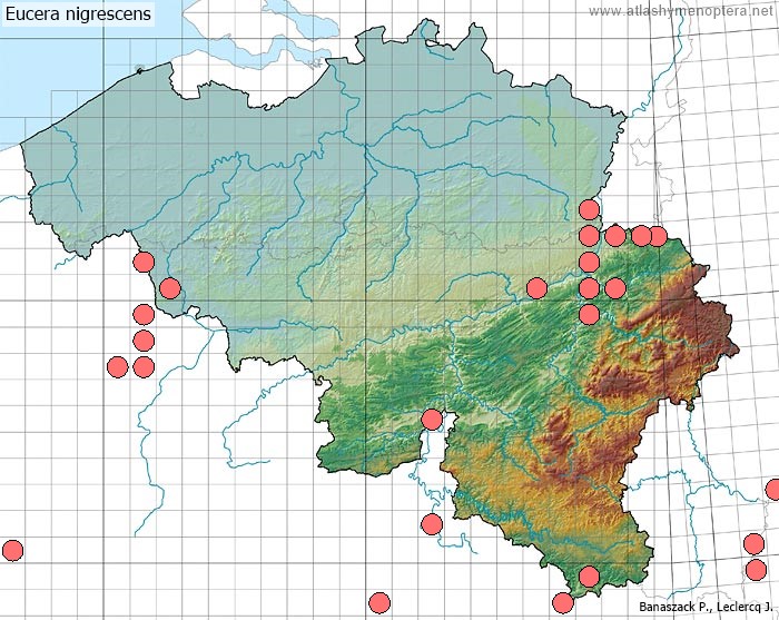 This webpage introduces the Belgian Eucera species and provides informations about their ecology, distribution, as well as pictures made in situ. The Belgian Eucera fauna encompasses only two species, namely E. longicornis and E. nigrescens, which both belong to the subgenus Eucera (like e.g. E. nigrilabris).