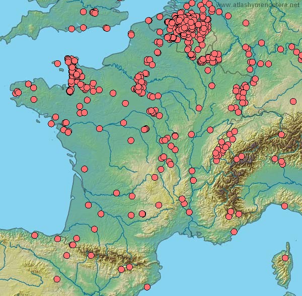 Distribution. Ouest-palaéarctique; depuis l’Angleterre jusqu’à l’Oural, de l’Ibérie centrale jusqu’à l’Iran.
