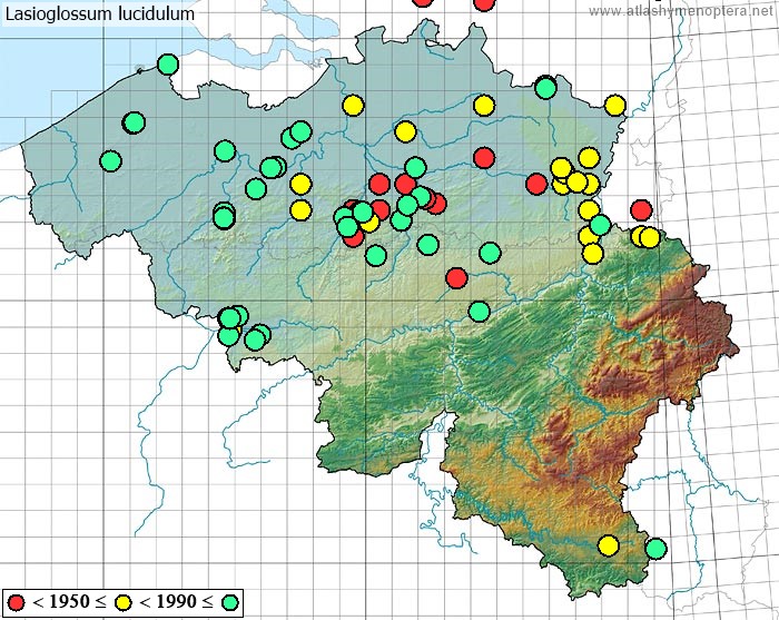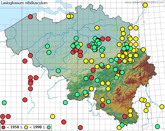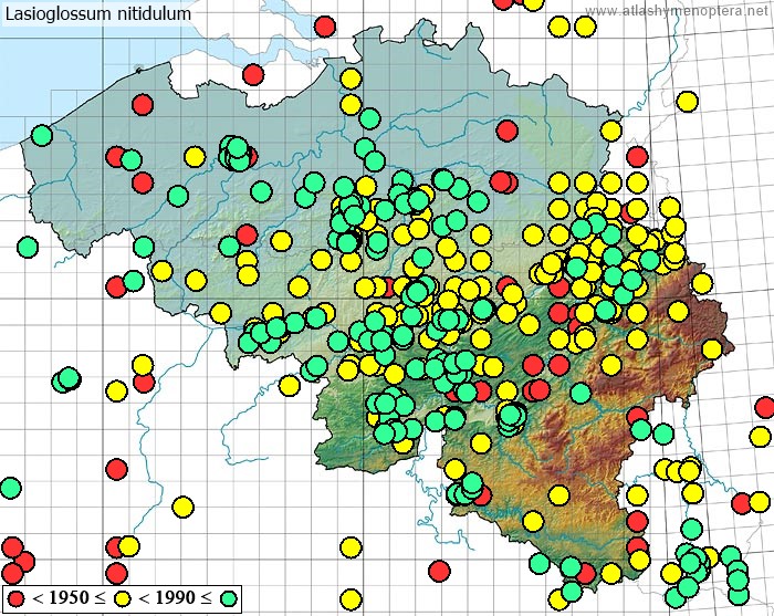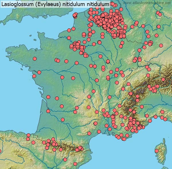 Distribution. La sous espèce nominale habite depuis la Belgique jusqu'aux Monts Tatra, vers le Sud jusqu’en Calabre, vers le nord jusque dans le Sud de la Suède (56°N). La sous-espèce aeneidorsum Alfken habite les steppes de l’Allemagne Moyenne (Berlin) vers l’est jusqu’à l’Oural, vers le Sud jusque dans le nord des Balkans. La sous-espèce cretense (Warncke 1981) est endémique de Crête. La sous-espèce fudakovskii (Noskiewicz 1925) habite la zone méditerranéenne des Balkans, depuis l’Istrie jusqu’en Asie Mineure (Bursa); la population de Sicile est intermédiare avec la sous-espèce typique. La sous-espèce hammi (Saunders, 1904) [= Lasioglossum nitidulum sardinium Ebmer, 1978 syn.nov.] est insulaire (Baléares, Sardaigne, Corse).