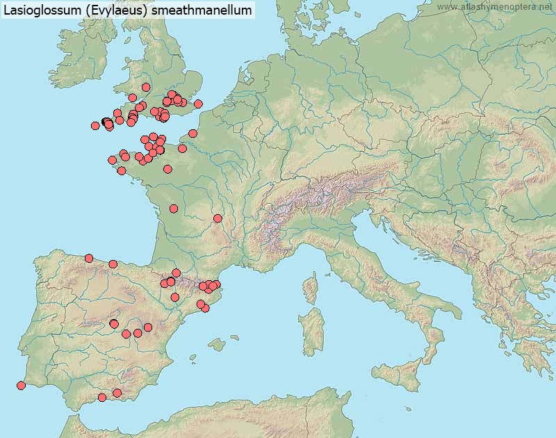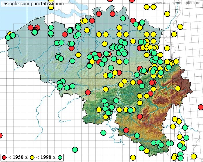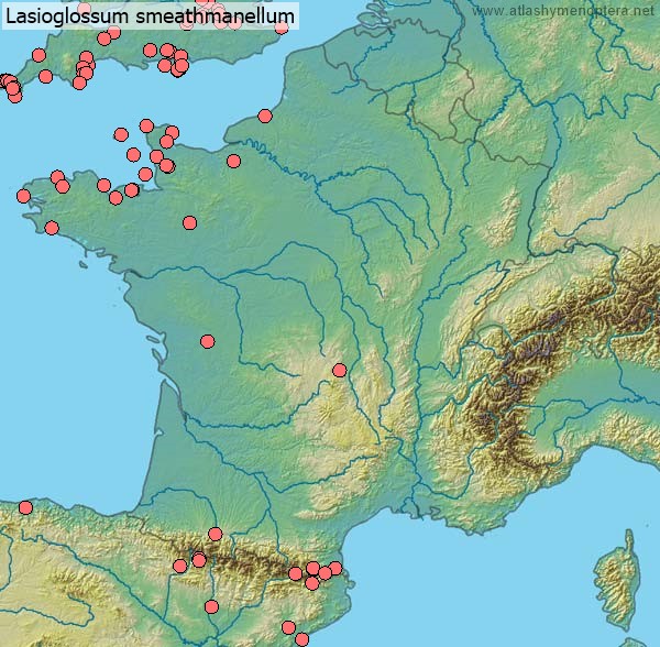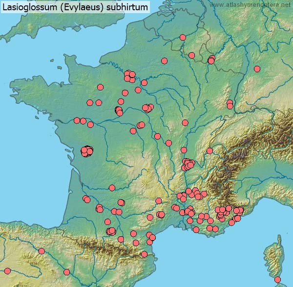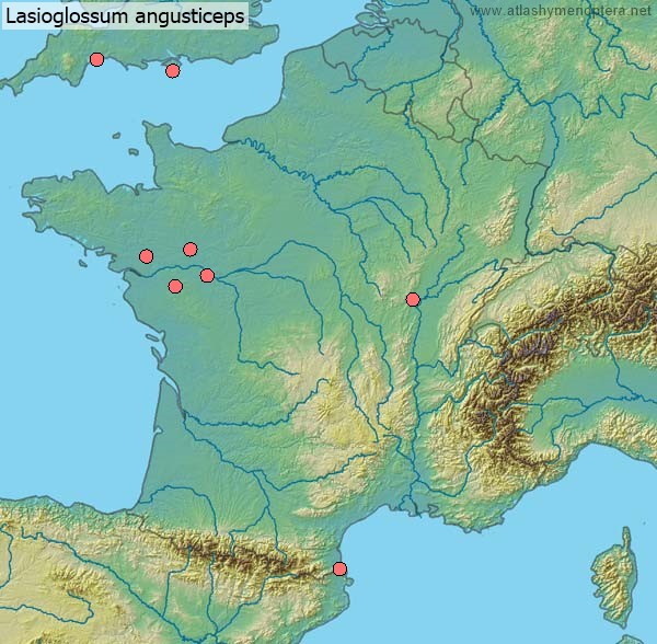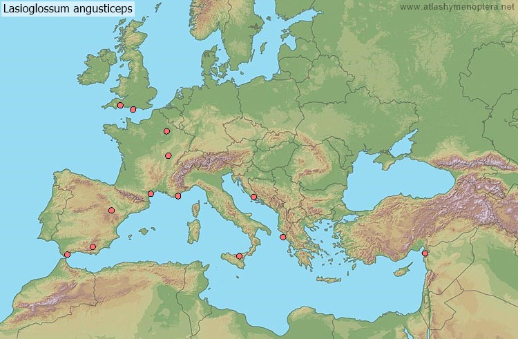 Distribution. Ouest-palaéarctique (euryoke); de l’Irlande jusqu’à l’Oural, du Maroc jusqu’à l’Iran, vers le nord jusqu’en Finlande (62°N). La sous-espèce angustifrons (Vachal 1892) [ = Halictus rubescens Pérez 1895; = Halictus punctatissimum angustifrons Vachal: Ebmer 1986 nec 1976] est distribuée dans le sud de l’Ibérie et le Maghreb.