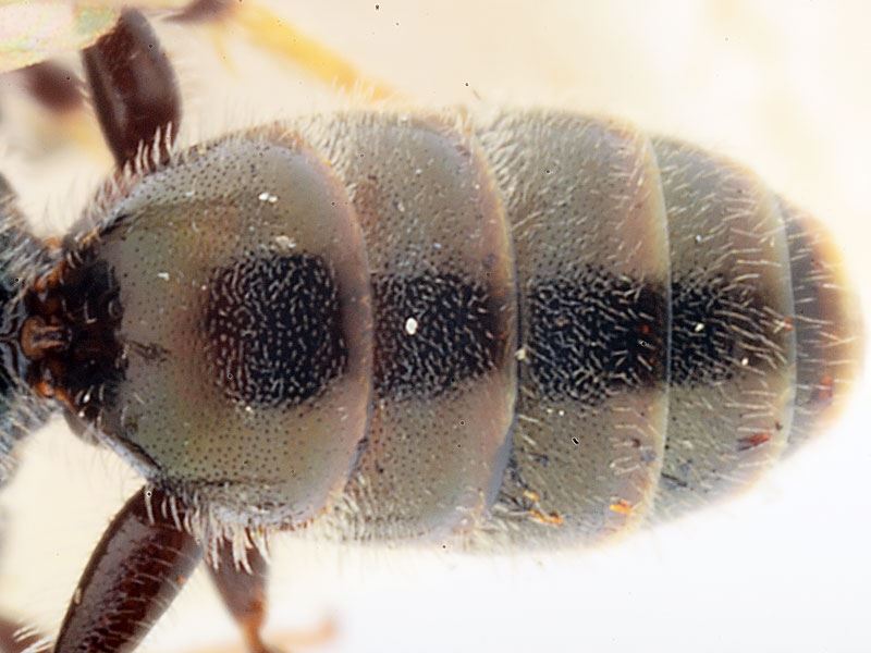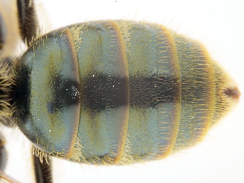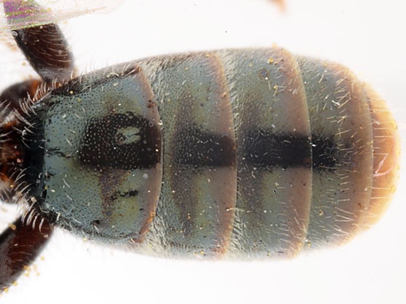 Diagnose. Proche de L. leucopus mais ponctuation plus forte, propodeum mieux caréné, tergites avec de légers reflets bronzés.