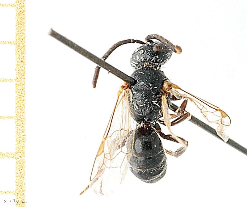 Hylaeus morio Fabricius, 1793 ; = Halictus balticus Blüthgen, 1919.
