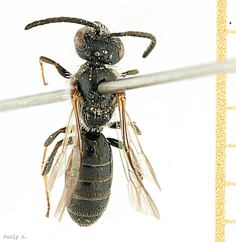Melitta laevis Kirby, 1802 ; = Hylaeus convexus Schenck, 1853 ; = Halictus nigriventris Arnold, 1894 ; = Halictus kriegeri Alfken, 1897