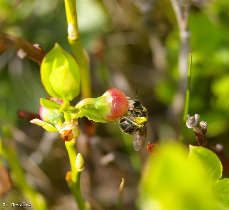 fin mai: collecte pendant les heures les plus chaudes de la journée (entre 13h et 18h) le pollen de Vaccinium myrtillus et Vaccinium uliginosum (Jelle Devalez, communic. pers.)