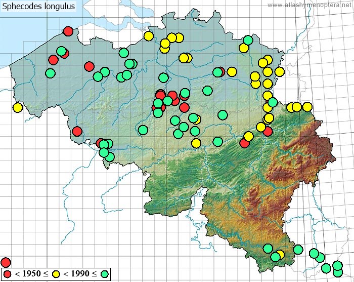 Sphecodes ephippius (Linnaeus 1767) SYNONYMIE. Sphex ephippia Linné, 1767; = Apis minimus Harris, 1776 (nec Poda, 1761); = Apis obscura Geoffroy, 1785 (nec Linné, 1774, nec Müller, 1776); = Apis rufescens Geoffroy, 1785 (nec Gmelin, 1790); = Apis rufescens Gmelin, 1790 (nec Geoffroy, 1785); = Apis labiata Fabricius, 1793; = Melitta divisa Kirby, 1802; = Andrena minuta Fabricius, 1804; = Sphecodes similis Wesmael, 1835; = Sphecodes zablocki Blüthgen, 1923.
