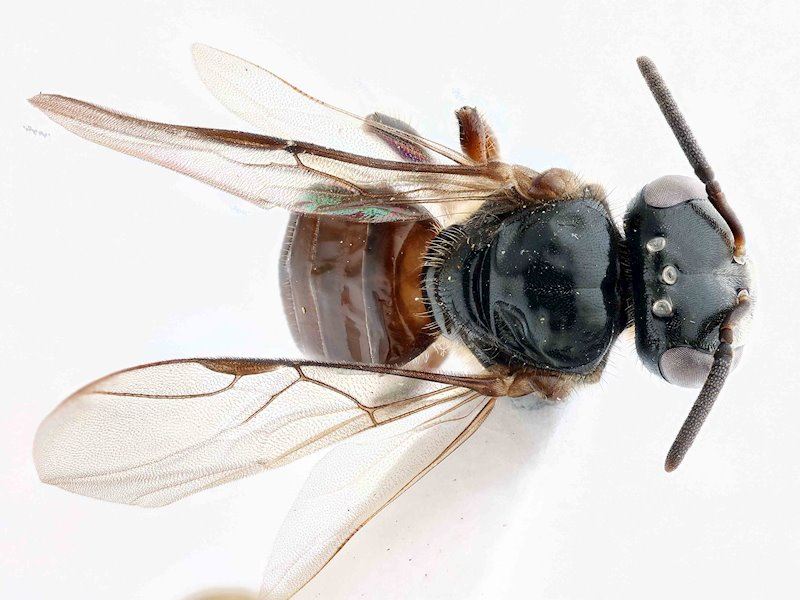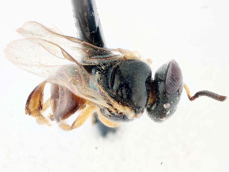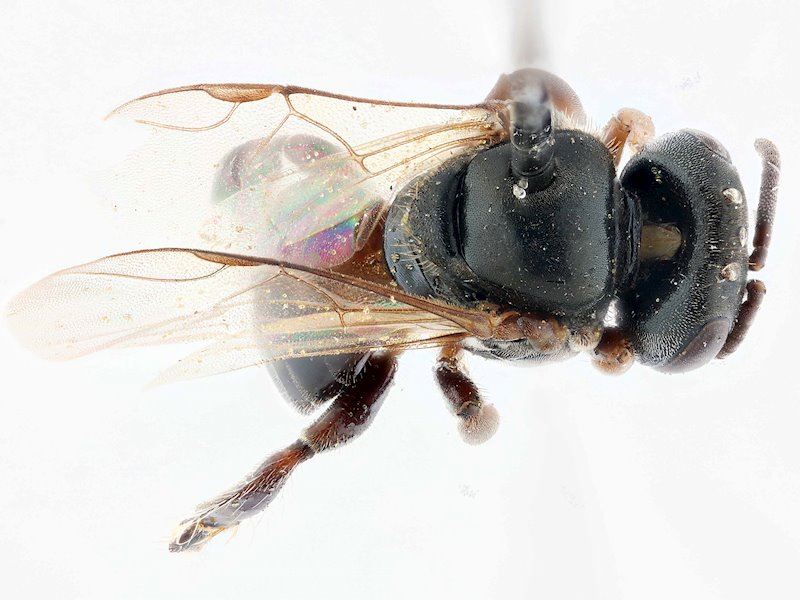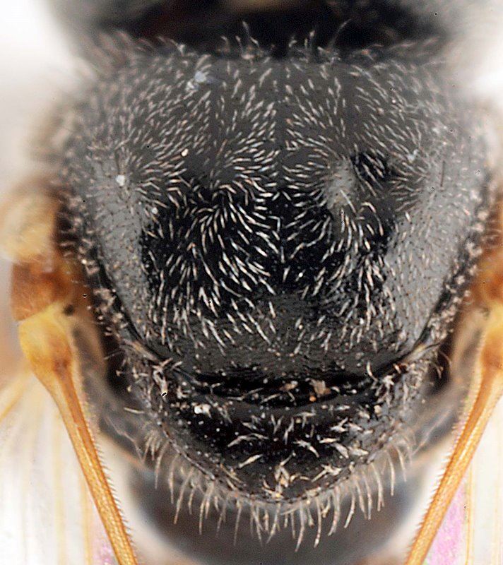 Diagnose. Petite espèce noire. Surface externe des tibias des ouvrières convexe, la corbicule et le penicillum absents. Tête cubique.
