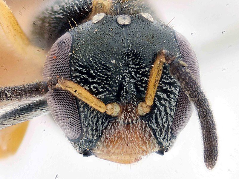 Diagnose. Aile avec une tache enfumée apicale ; face maculée de jaune ; metasoma rouge ou noir. Longueur 6 mm.